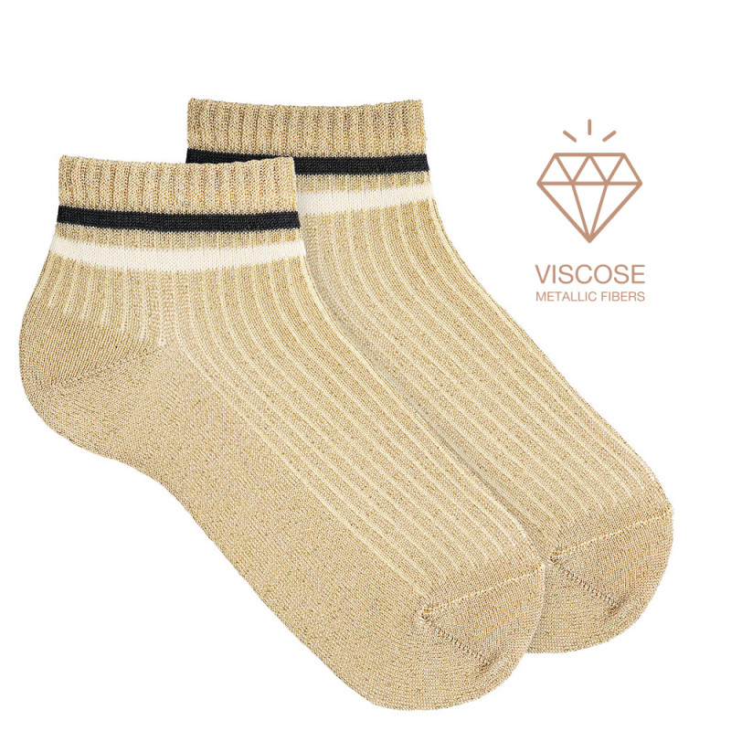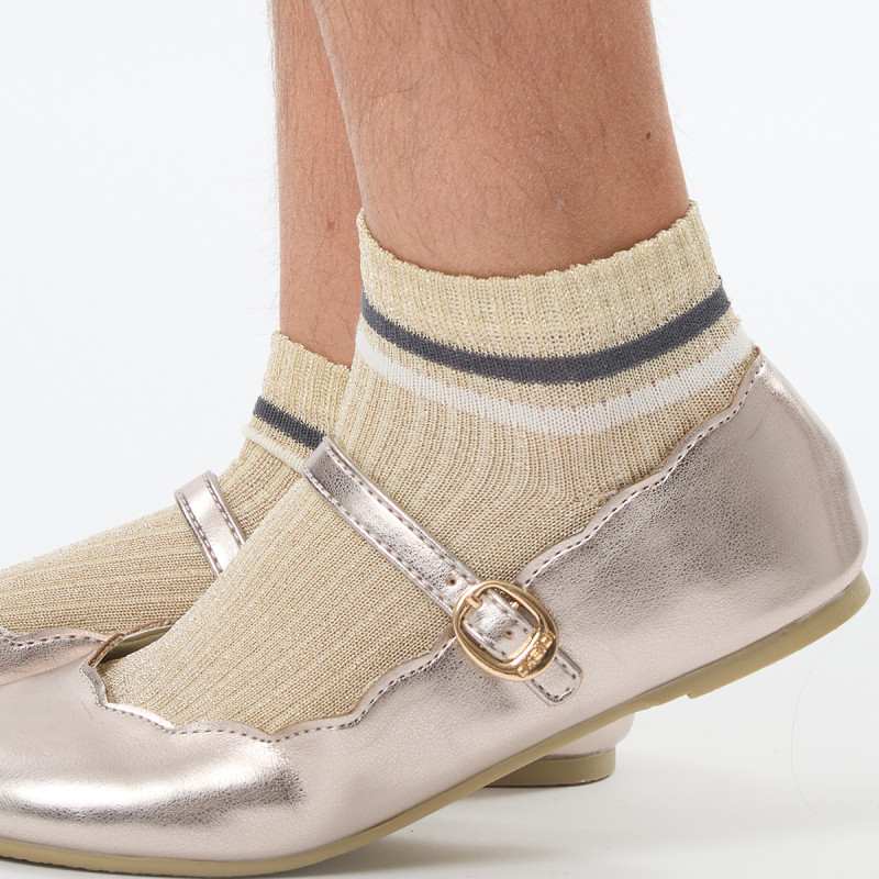 Prachtig enkelsokje met glitter dat niet prikt. De streepjes geven de sokjes een stoere uitstraling.